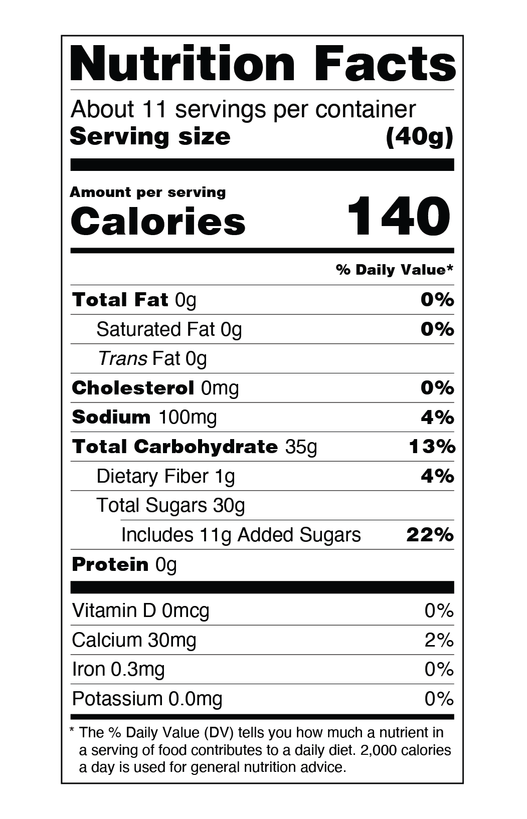 Peach, Cane Sugar, Citric Acid, Sodium Metabisulfite as a Preservative